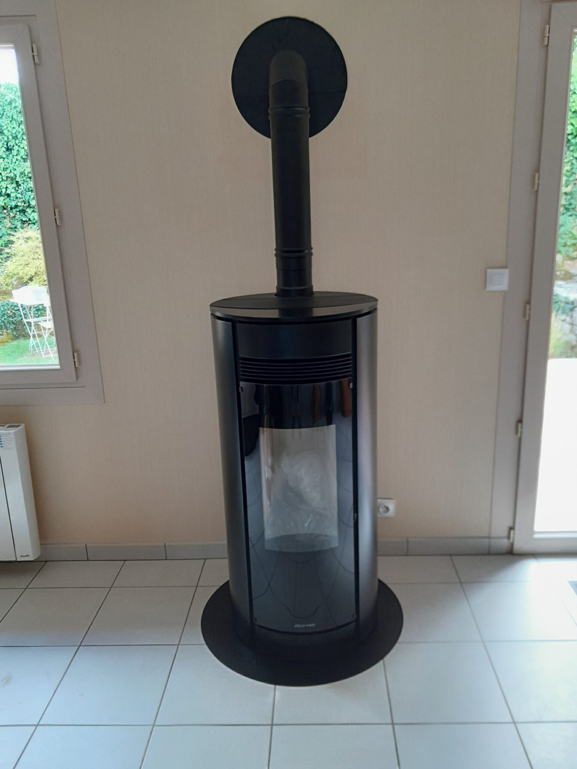 INSTALLATION DE DEUX POELES A GRANULES Installation et mise en service de deux poêles a granulés de marque jolly mec modèle globo . modèle noir modèle pierre olaire