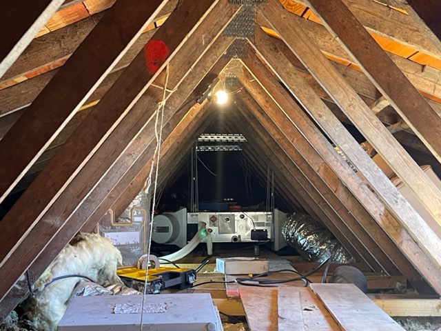 18 Juil, 2022 INSTALLATION D’UN SYSTEME DE CLIMATISATION GAINABLE Installation d’un système de climatisation réversible gainable de marque Panasonic . Le système gainable est très silencieux et permet de garder votre maison au frais tout l’été ainsi que de vous chauffer l’hiver. Installation discrete, seules les bouches de soufflage et de reprise d’air sont visibles au plafond. La température de chaque pièce peut être pilotée séparément grâce au kit de régulation Baillindustrie. Bouche de reprise d’air Groupe extérieur Départ soufflage (combles) Groupe intérieur (combles) Bouche de soufflage
