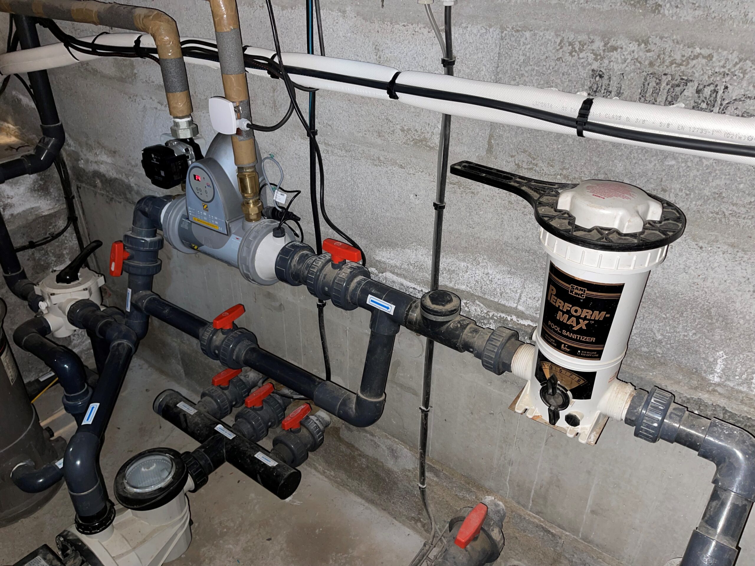 Cette installation complexe mais avec un encombrement relativement contenu, permet la production simultanée de trois biens finaux. Le chauffage, l’eau chaude sanitaire et le chauffage d’eau de piscine. Ceci est possible grâce à une pompe à chaleurPanasonic.