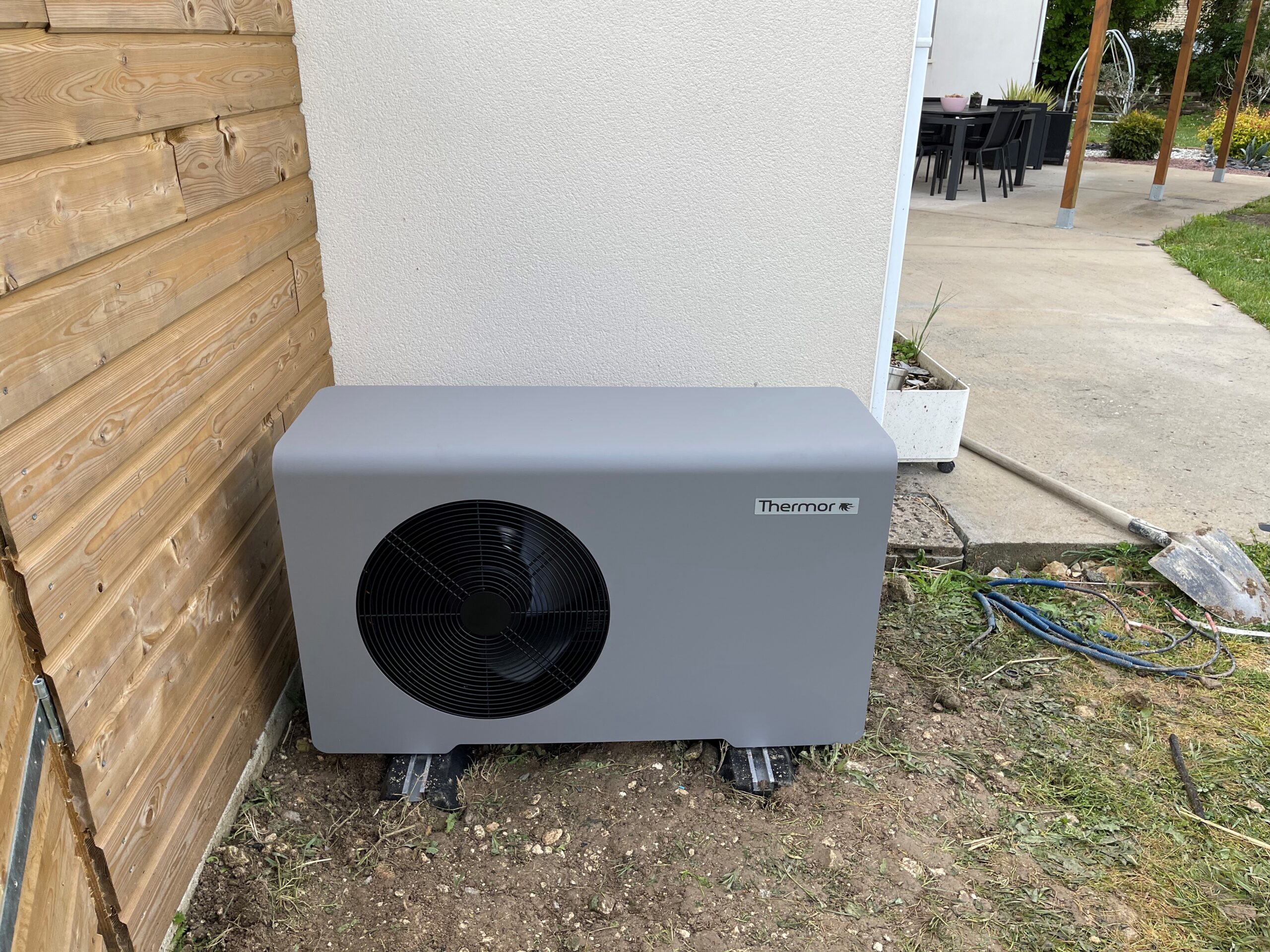 Cette installation discrète est entièrement dédiée au chauffage de l’eau d’une piscine. Contrairement à une pompe à chaleur traditionnelle composée d’un bloc intérieur et un extérieur, ici, un seul bloc Thermor est nécessaire.